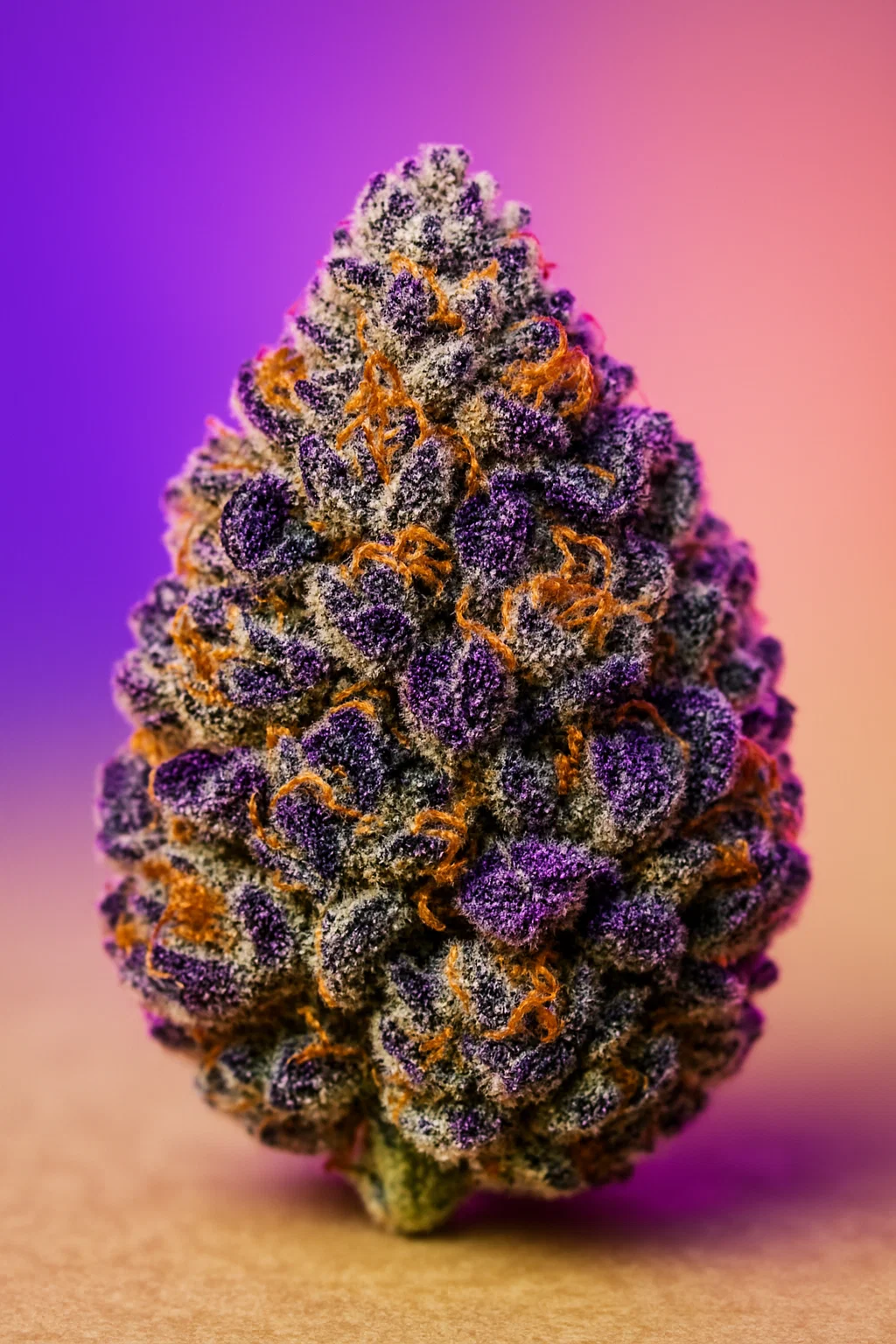 Das Aroma ist dominant und unvergesslich. Eine süße, fast sirupartige Note von dunklen Trauben und Waldbeeren trifft auf eine cremige, teigige Basis, die von einem subtilen, aber scharfen, gasartigen Unterton durchzogen ist. Die Blüten sind das, wovon Züchter träumen: extrem dichte, steinharte Nuggets in leuchtendem Lila und Dunkelgrün, die so vollständig mit Harzdrüsen bedeckt sind, dass sie weiß erscheinen. Dies ist eine Sorte, die "Bag Appeal" neu definiert.