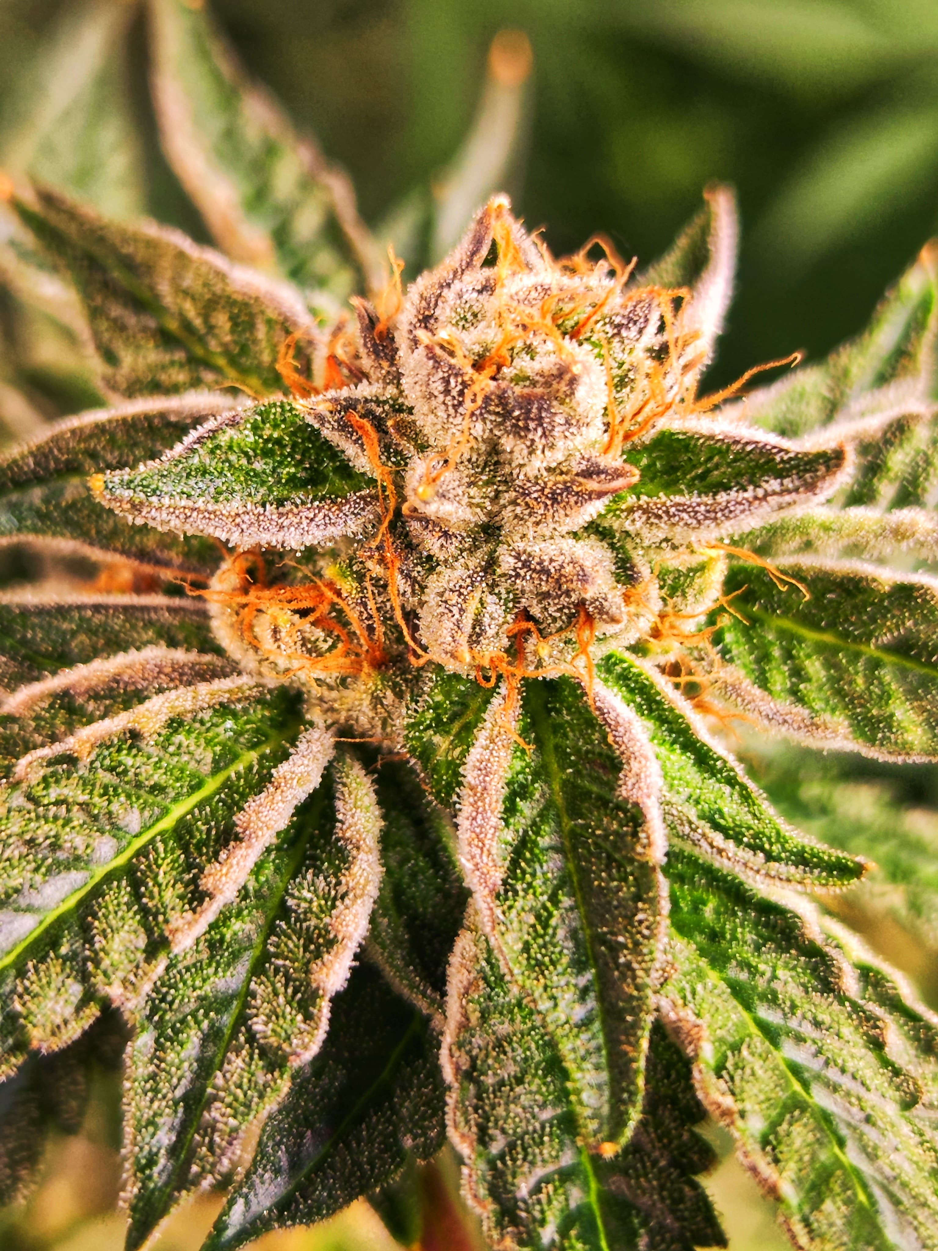 Nach der Lichtumstellung begann die Blüte rasant. Bereits in Woche 5 setzte eine massive Harzproduktion ein. Die Trichome überzogeicht nur die Blüten, sondern auch die umliegenden Blätter. Das Aroma im Zelt wurde intensiv und süß.